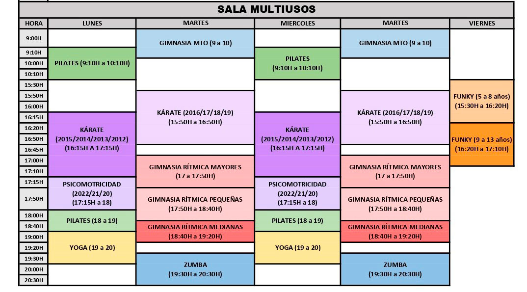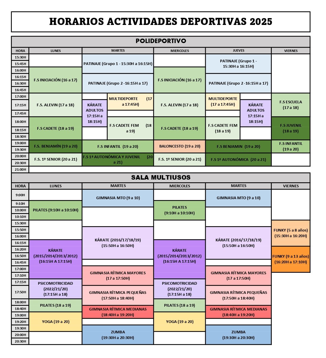 Entre ellas destaca el Fútbol Sala, pero no por ello, dejamos de programar otro tipo de actividades para el mantenimiento, perfeccionamiento, musculación, etc…