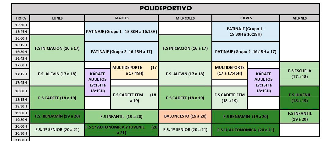 Escuela de fútbol sala, tenis, pádel, patinaje, etc.